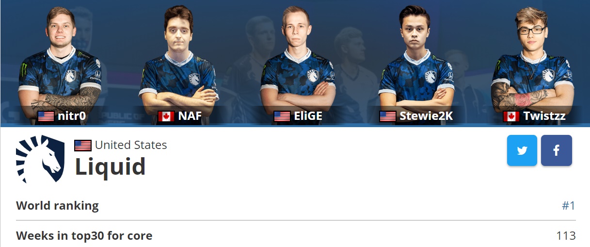 Team Liquid to profesjonalny zespół założony w Holandii w 2000 roku. Pierwotnie klan Brood War , zespół przeszedł na StarCraft 2 podczas SC2 Beta w 2010 roku i stał się jednym z najbardziej udanych zespołów zagranicznych. 13 stycznia 2015 r. Ogłoszono, że zespół utworzył oddział Counter Strike: Global Offensive.